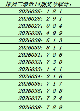 上期回顾:排列三第2026038期奖号:789。和值24,跨度2。