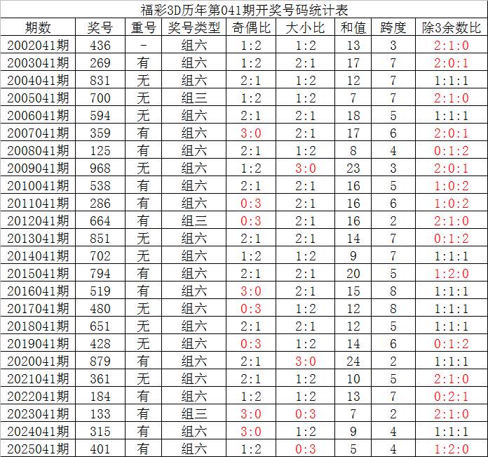 其中,组三号码开出3次,组六号码出现21次,上期奖号为组六号码,本期预计继续开出组六号码。