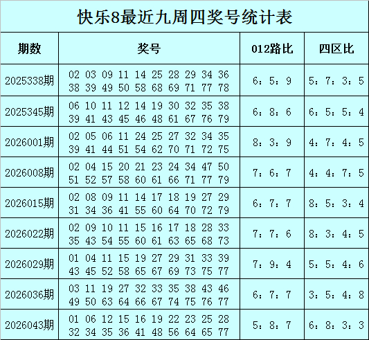 福彩雅瞻念8第2026043期(上周四)开奖回来:01 06 12 15 16 19 22 23 25 28 32 34 35 36 41 48 56 64 65 77,其中奖号四区比为6:8:3:3,012路比为5:8:7。