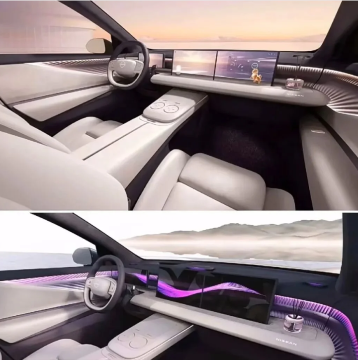 再来看车尾部分,NX8的尾部计划号称点睛之笔。麇集式尾灯由2064颗OLED灯珠构成量子光幕,庄闲和复旧自界说灯语功能(如“迎接回家”“寿辰欢跃”等场景化久了),夜间点亮时犹如流动的银河。尾灯中央嵌入发光的“NISSAN”标识,与前脸变成呼应。后包围禁受大面积熏黑塑料包覆,搭配横向镀铬阻扰条,既擢升了脉络感,又强化了开通气质。此外,尾部还配备了环形尾翼与高位刹车灯,兼顾了好意思学与安全性。