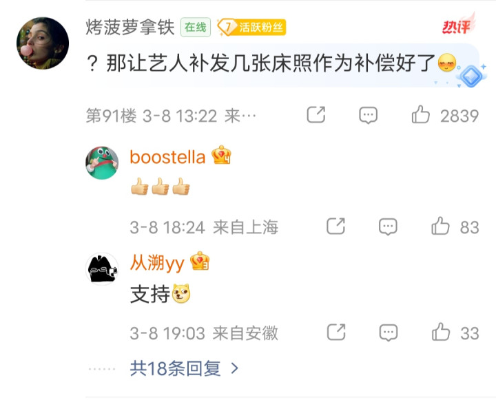 网友簸弄这是“内娱最诚恳公关”,甚而提议“让艺东谈主补发床照四肢抵偿”,获取一众网友的提拔。